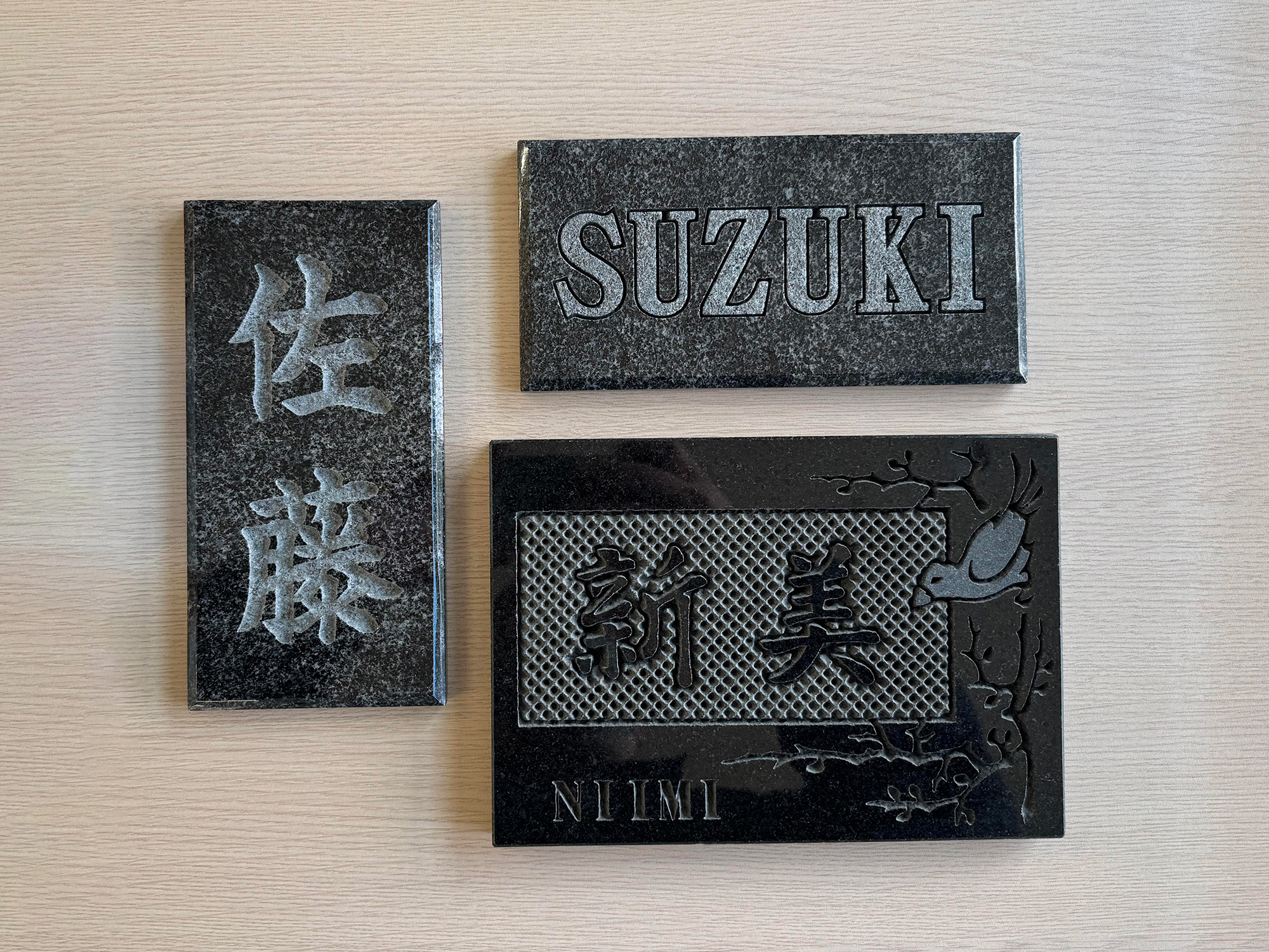 墓石を薄く切り出して研磨し、ご家名などを彫刻することで、世界に一つだけの表札へと再生させます。ご自宅だけでなく、ご希望に応じてゆかりのあるご親戚の皆様にもお配りいただけます。故人の想いを繋ぐ新しい形をご提案します。